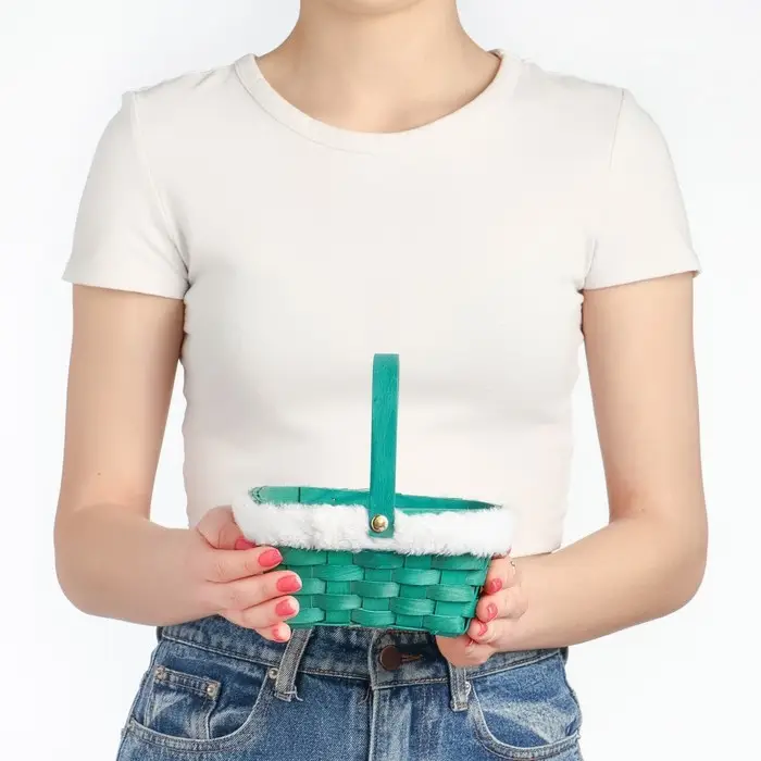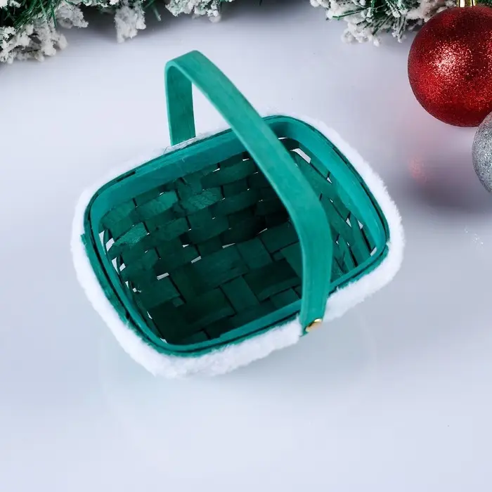 Корзина «Новогодняя», зелёная, 15×12×7,5/25 см, шпон