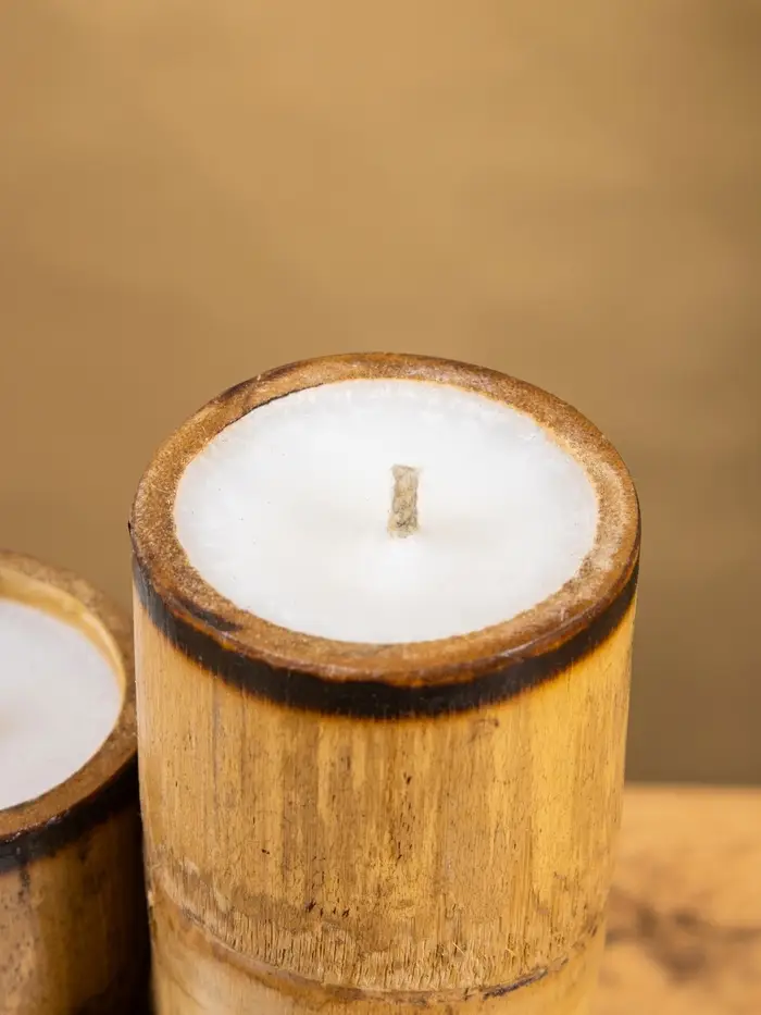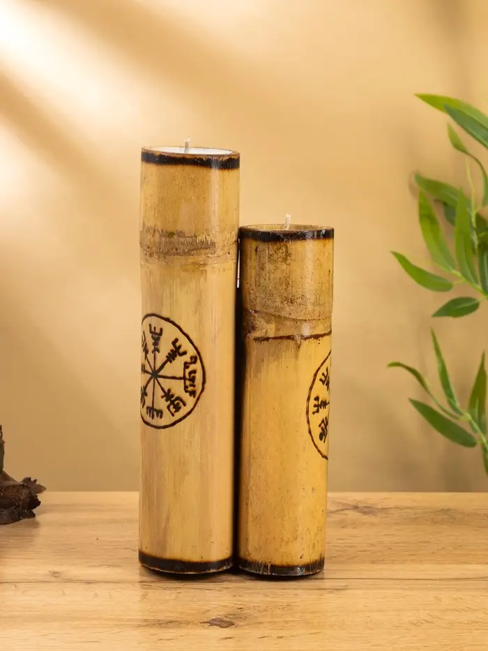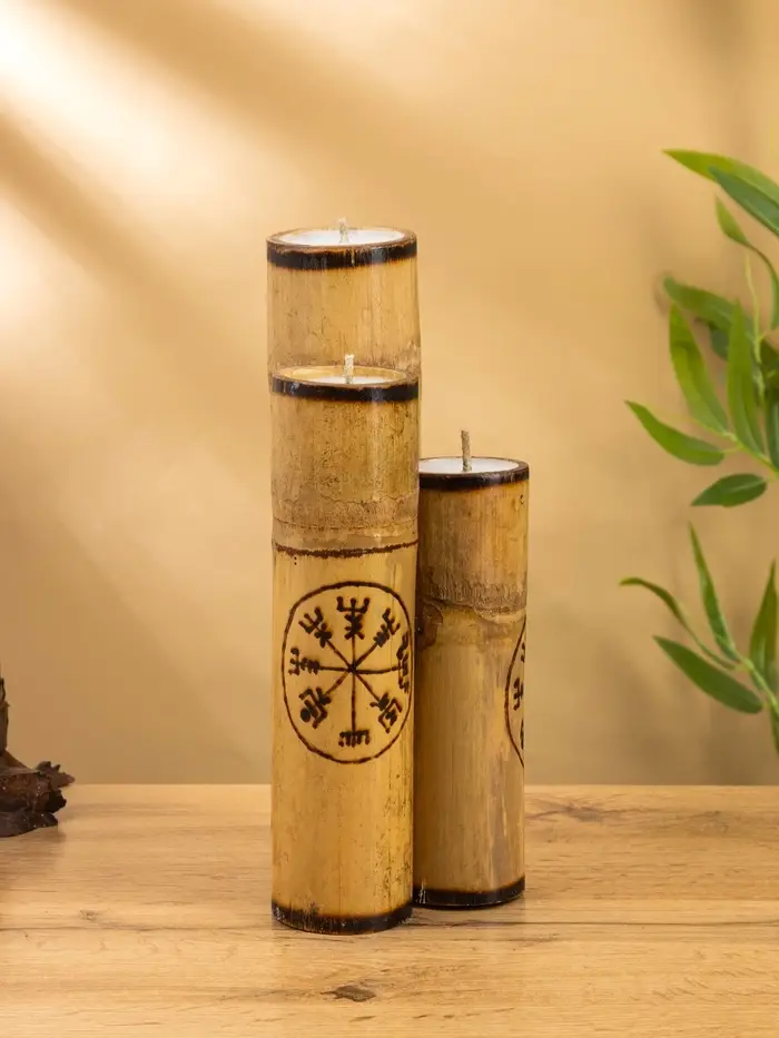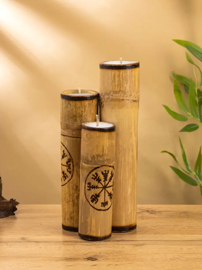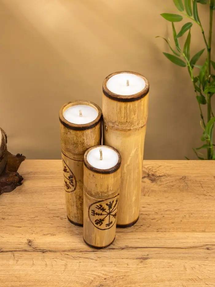 Свеча в бамбуке тройная «Руны», 13×14×30 см, 100 мл, бежевая