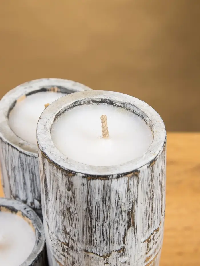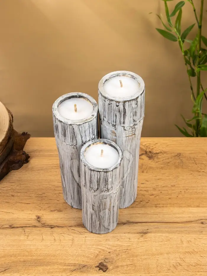 Свеча в бамбуке тройная, 15×13×30 см, 100 мл, серая