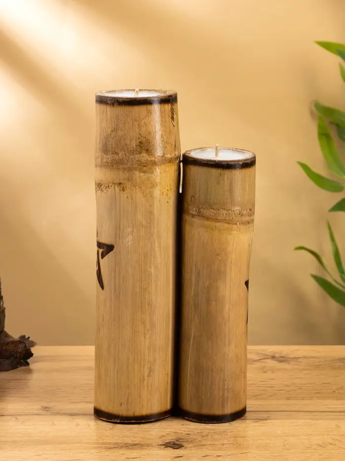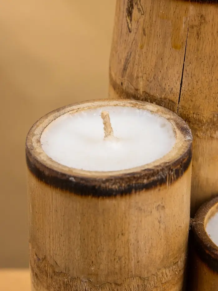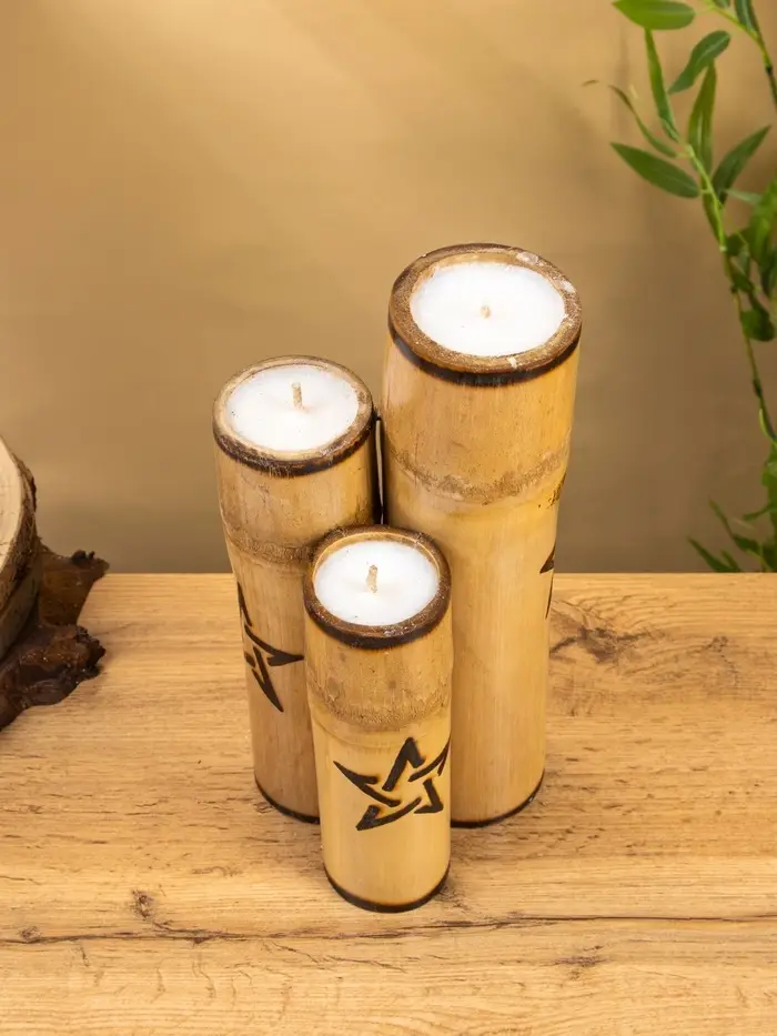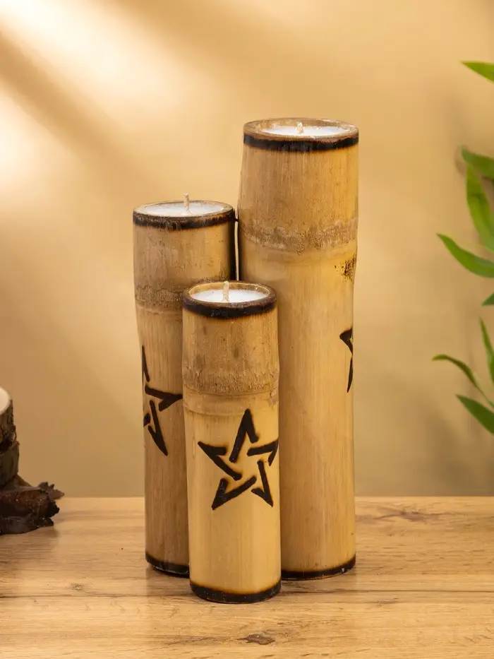 Свеча в бамбуке двойная «Звезда», 13×14×30 см, 100 мл, бежевая