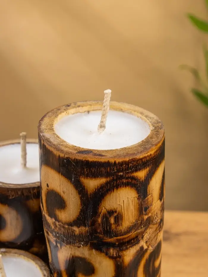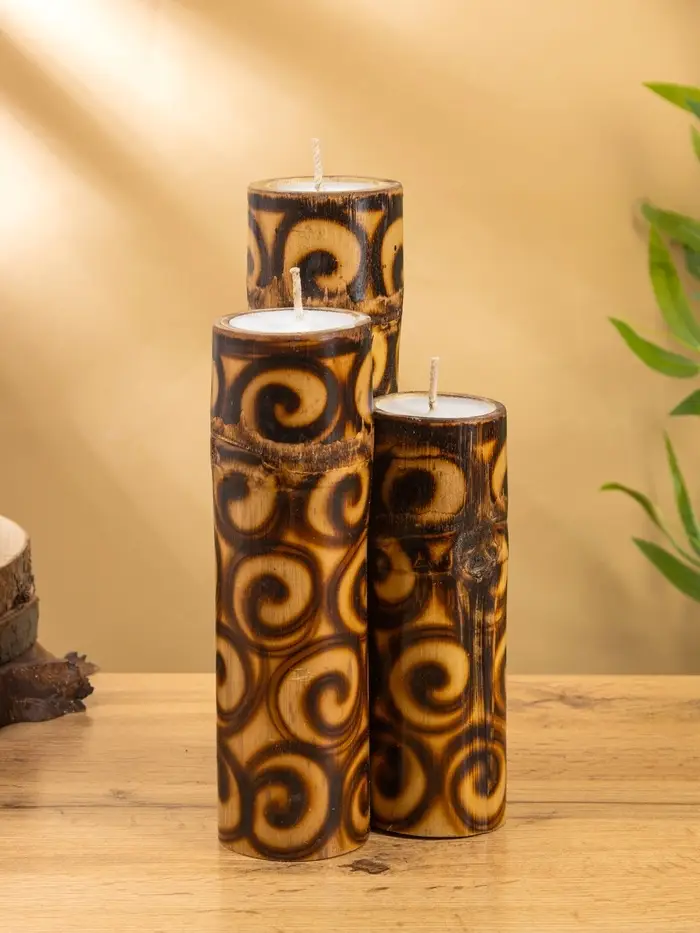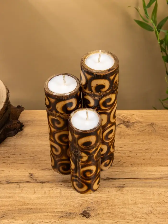 Свеча в бамбуке тройная, 14×13×30 см, 100 мл, коричневая