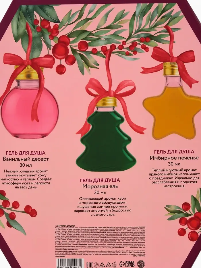 Гели для душа «С Новым годом», набор 6х30 мл, URAL LAB