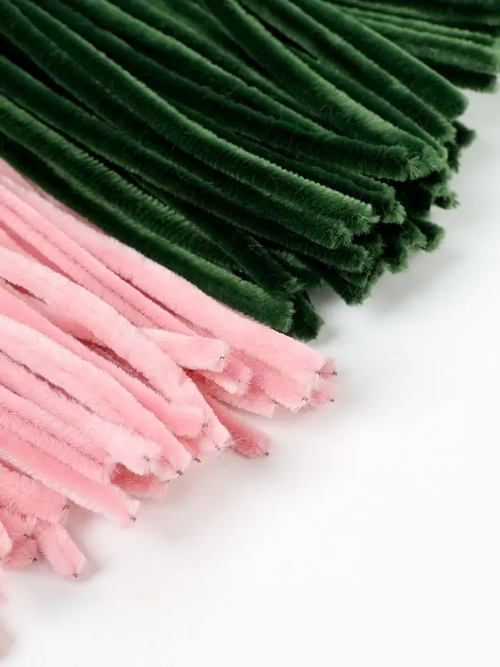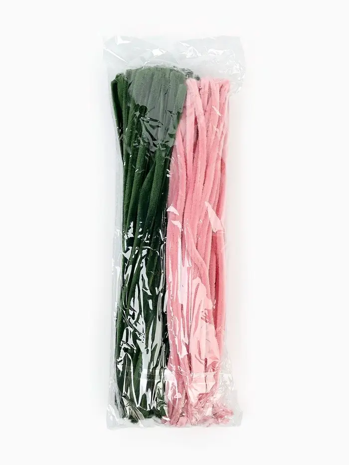 Синельная проволока, набор 100 шт, размер 1 шт 30х0,8 см, цвет розовый и зеленый
