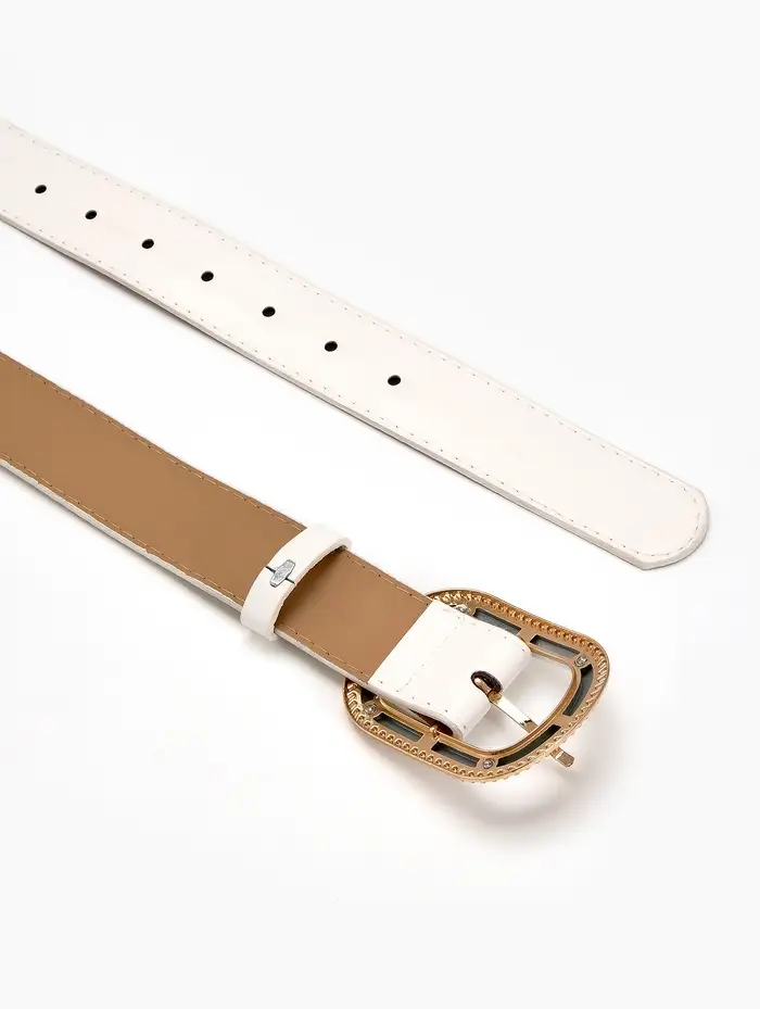 Ремень жен 05-01-07-01, Июнь2507, 3*0,3*110 см, без винта, пряж золото+пласт, 1 прокол, бел 109031