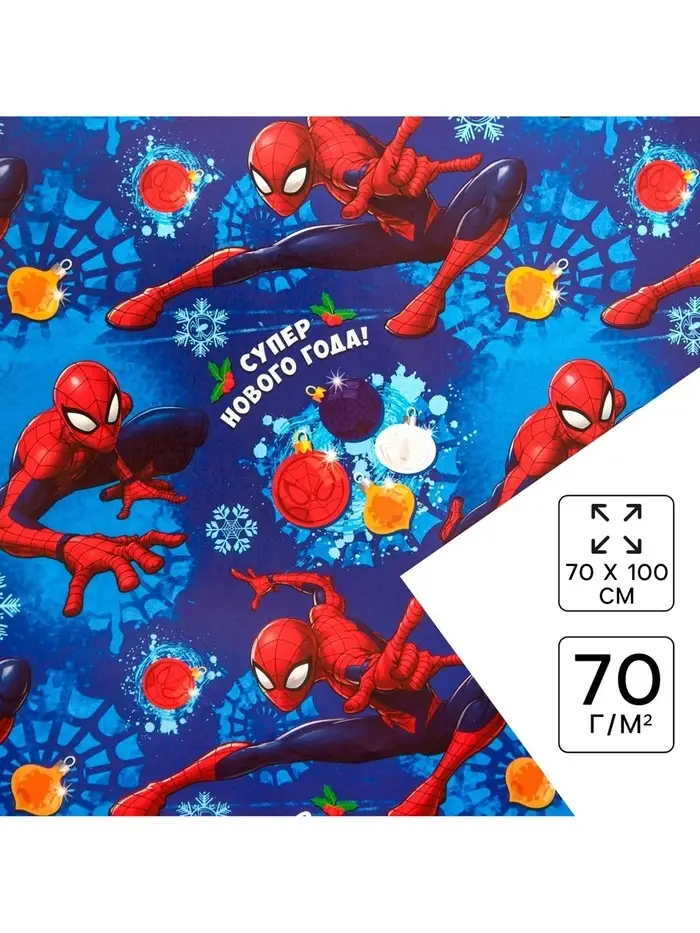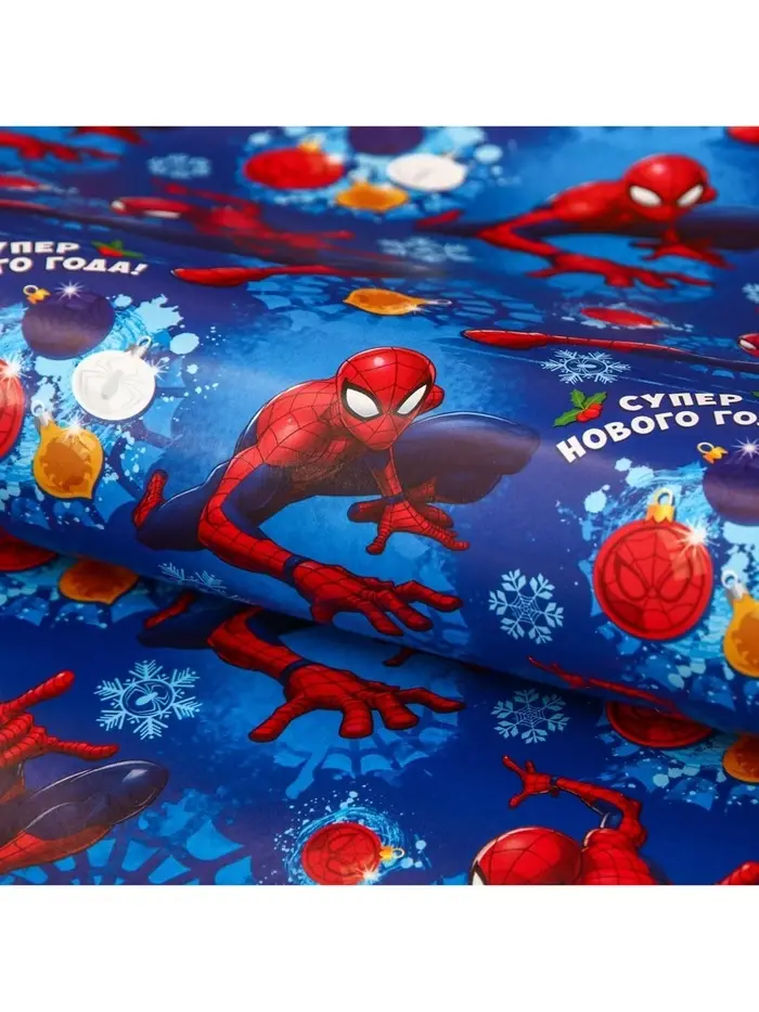 Бумага упаковочная глянцевая «С Новым Годом!», Человек-паук, 70 х 100 см