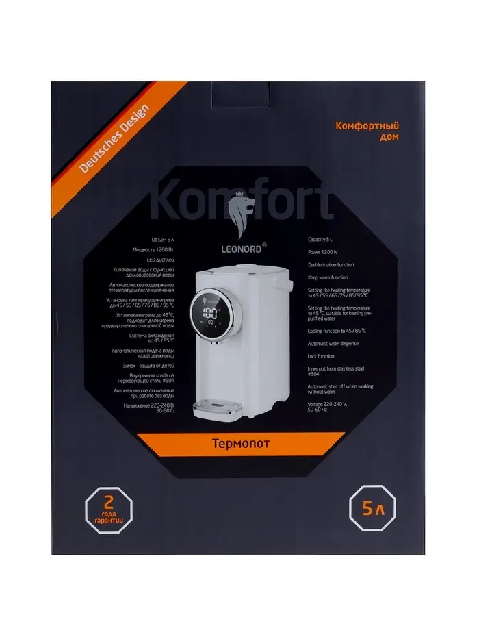Термопот Leonord LE-1542, 1200 Вт, 5 л, регулировка t, сенсор, 8 режимов, белый