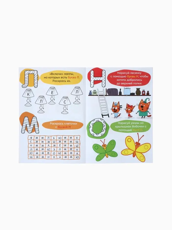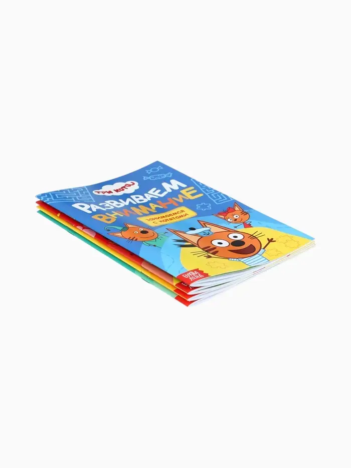 Обучающие книжки «Занимаемся с котятами» — это набор из 4 компактных книг формата А5, созданных по мотивам популярного мультфильма «Три кота». Каждая книга содержит 20 страниц с увлекательными заданиями, которые помогут детям от 3 лет освоить базовые навыки: счёт, цвета, буквы и развитие внимания. Яркие иллюстрации и знакомые персонажи делают обучение интересным и доступным для малышей.