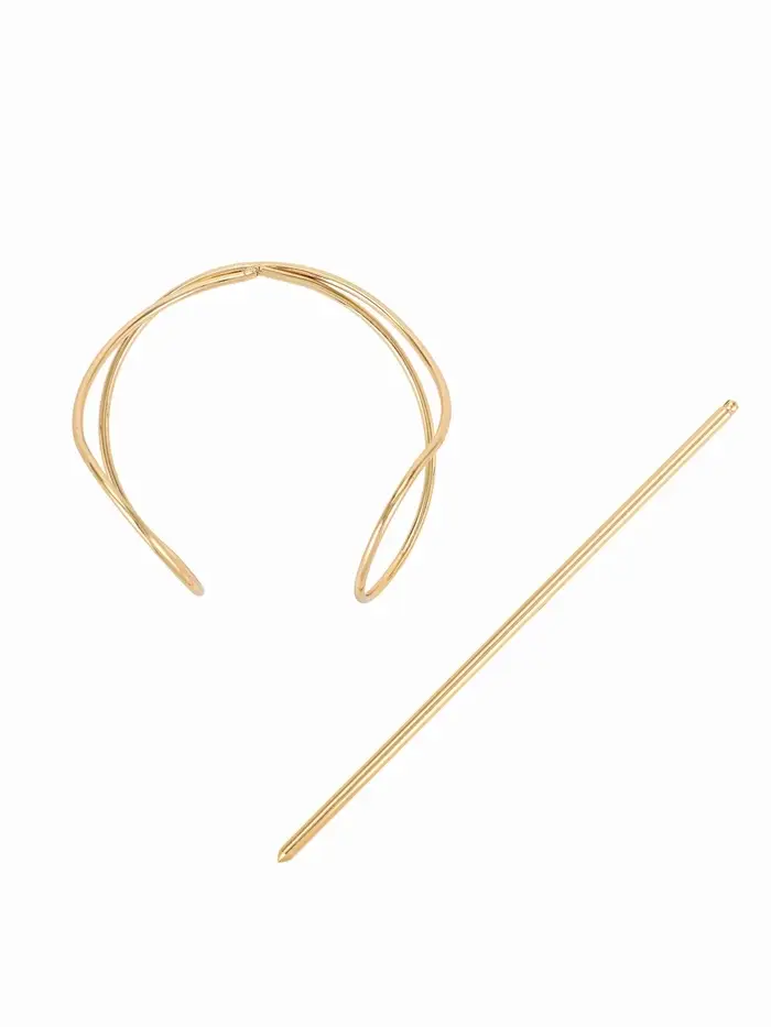 Элегантность, застывшая в металле. Золотой зажим «Джулен» — это стильный аксессуар для волос, сочетающий лаконичный дизайн и надежную фиксацию. Он легко справляется с объемом и добавляет образу завершенность.