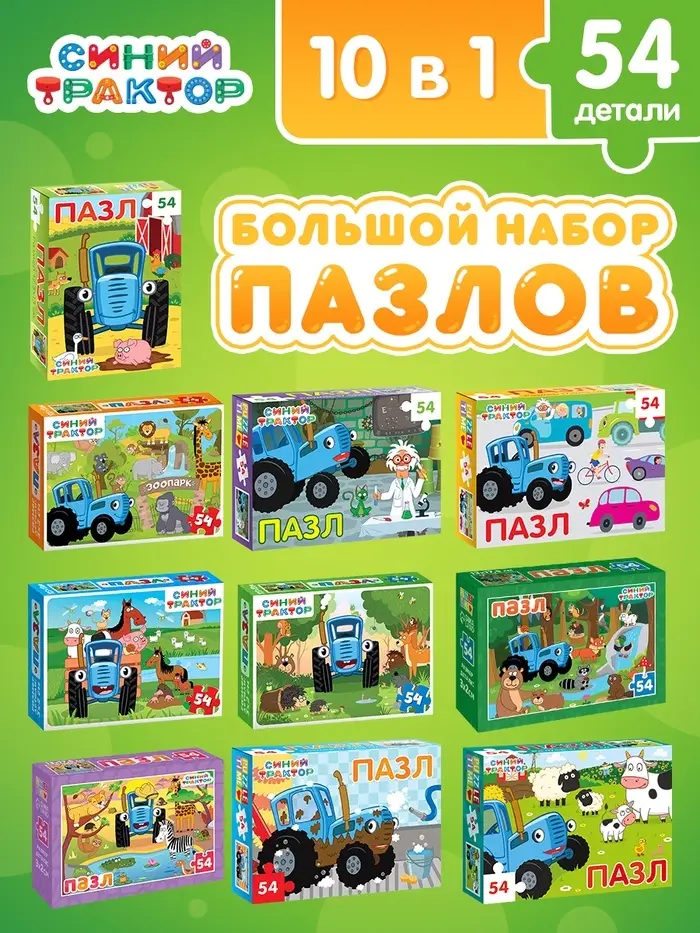 Большой набор пазлов "Синий трактор", 10 в 1