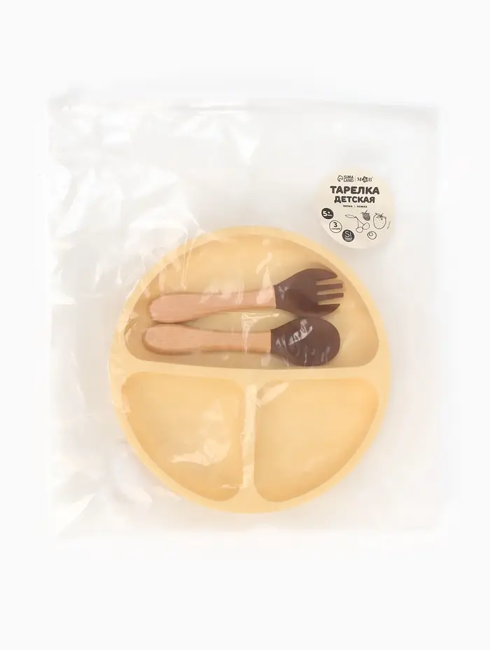 Тарелка детская секционная с ложкой и вилкой, 3 секции, молочный, Mum&Baby