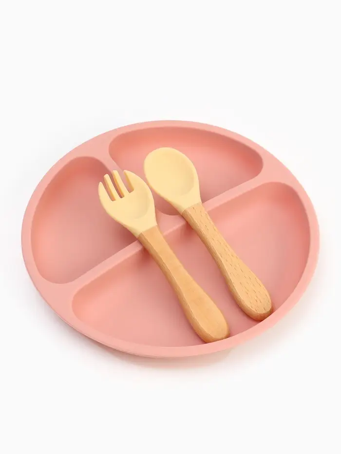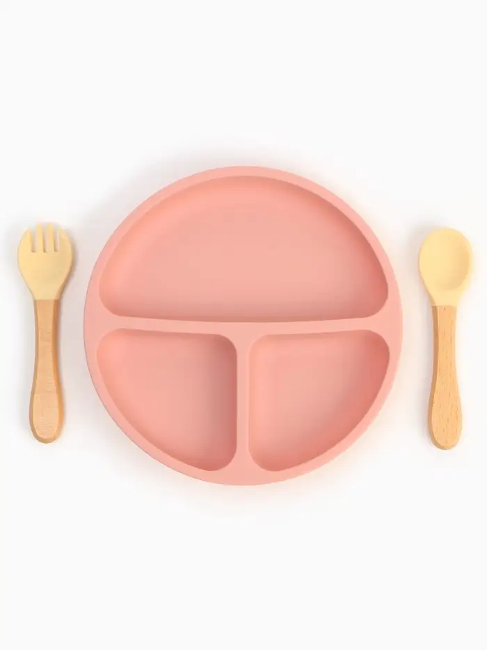 Тарелка детская секционная с ложкой и вилкой, 3 секции, розовый, Mum&Baby
