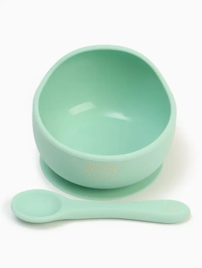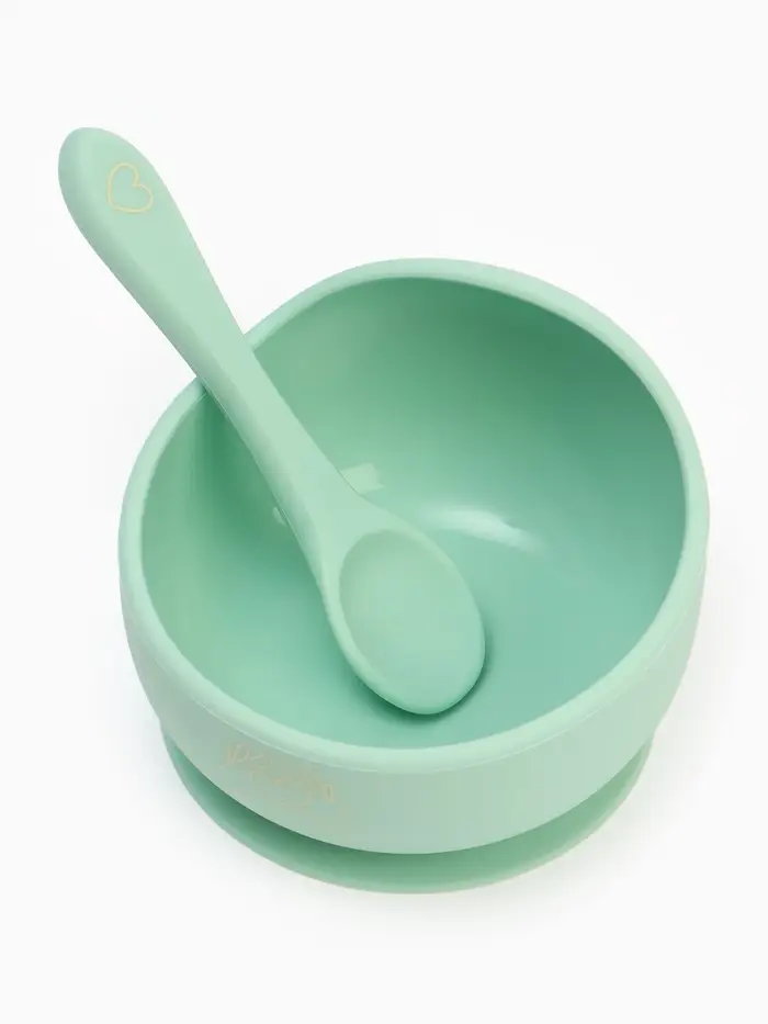 Тарелка детская на присоске и ложка, бирюзовый, Mum&Baby