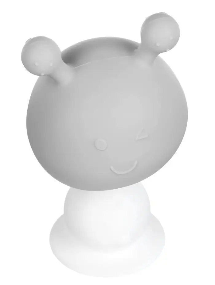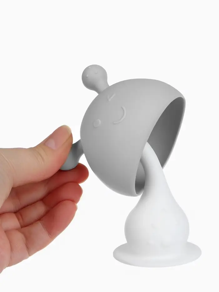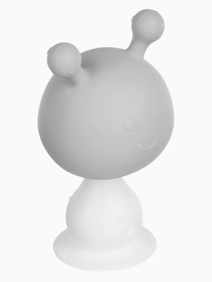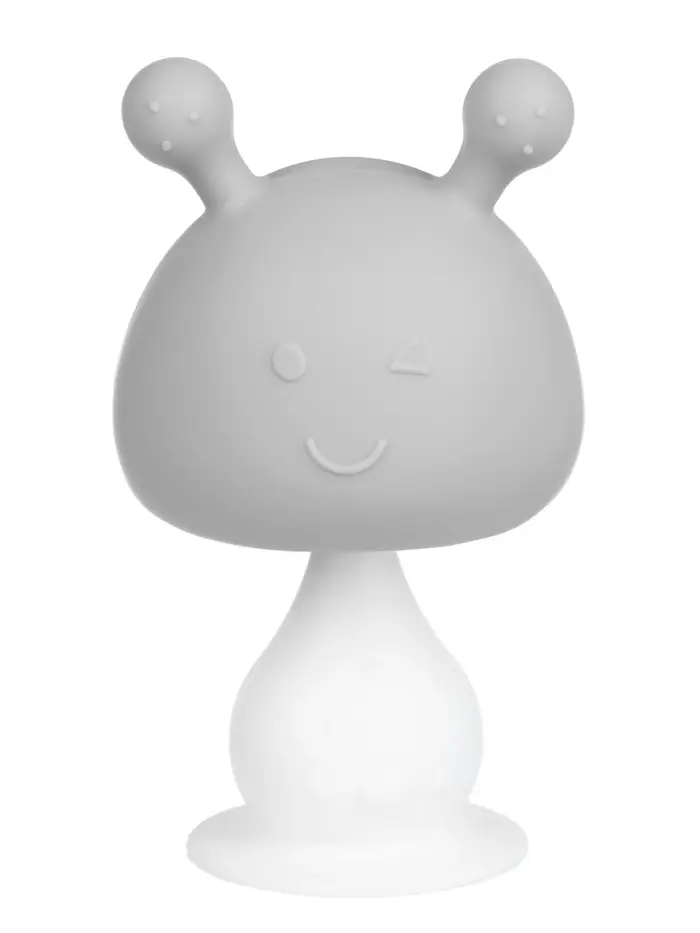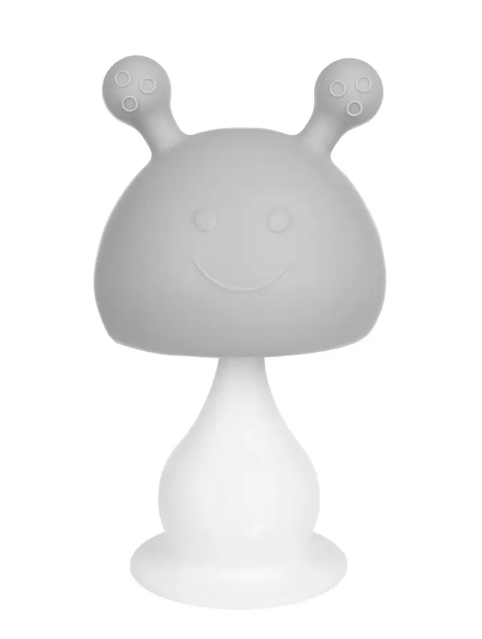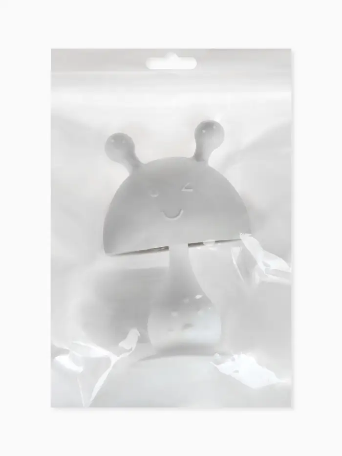 Прорезыватель силиконовый для зубов с погремушкой 3 в 1 M&B «Зайка», серый