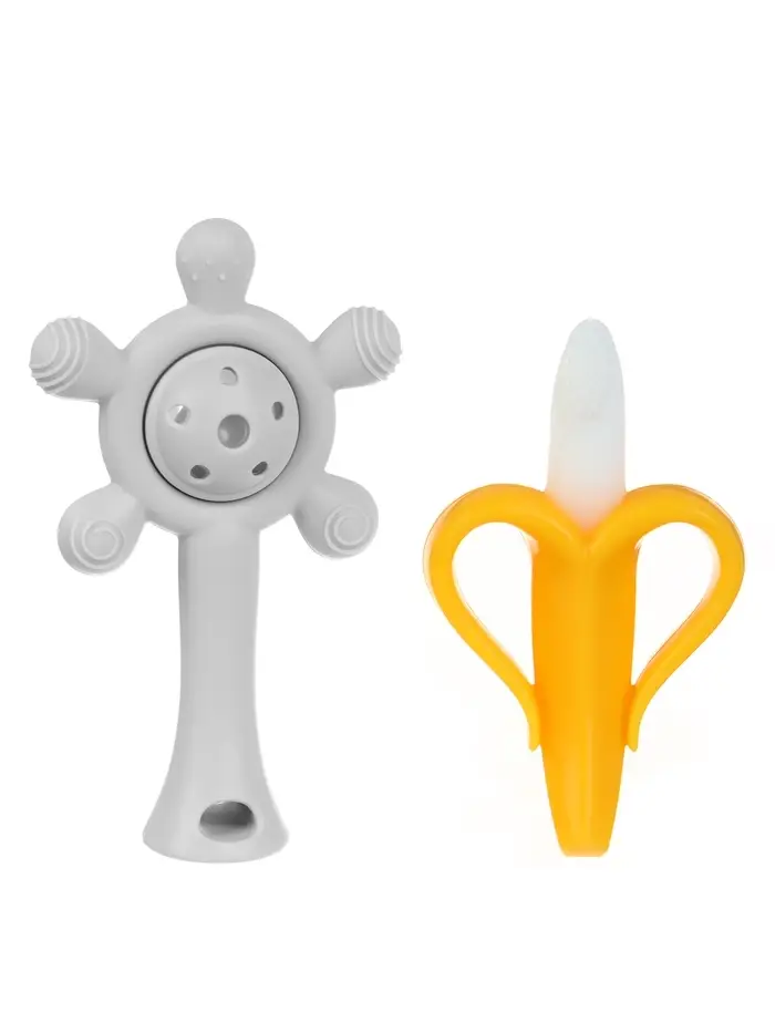 Набор силиконовых прорезывателей для зубов «Банан, погремушка», 2 шт., Крошка Я
