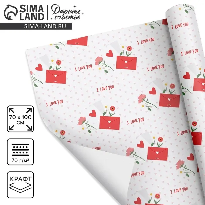 Бумага упаковочная крафтовая «Письма любви», 70 х 100 см
