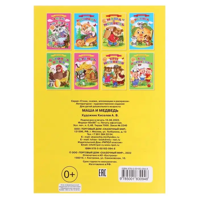Сказки для малышей «Маша и медведь»