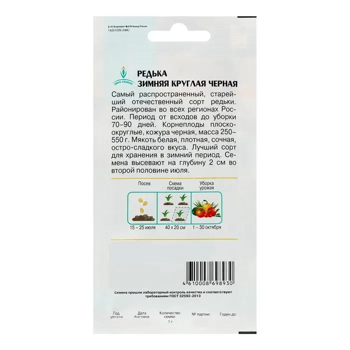 Семена Редька "Зимняя круглая чёрная", среднеспелая, 1 г