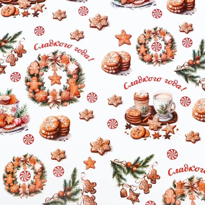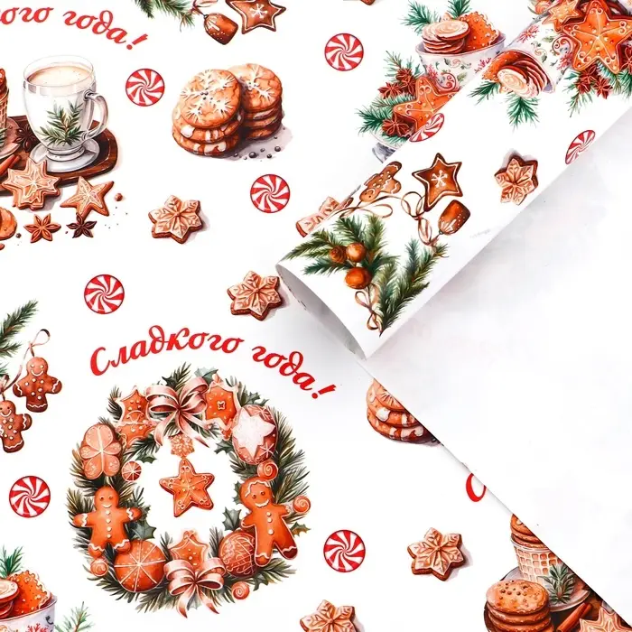 Бумага упаковочная новогодняя "Сладкого года", глянец, 80 г/м2 , 50 х 70 см