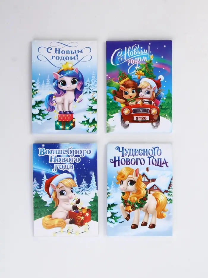 Блокнот А7, 16 л МИКС "Новогодние лошадки"