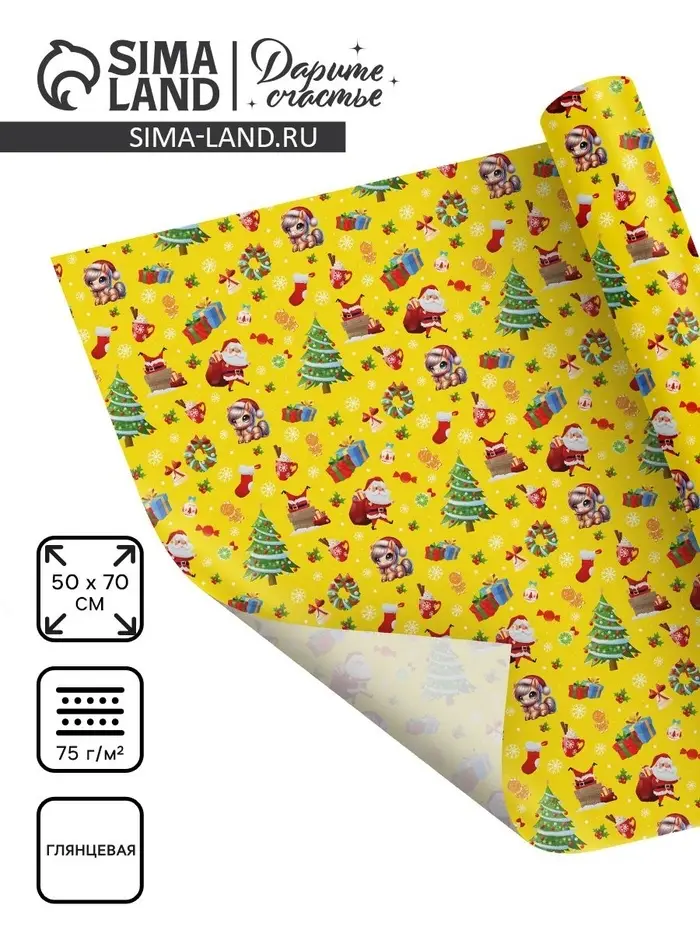 Бумага упаковочная глянцевая «Коняшка и дед Мороз», 50×70 см