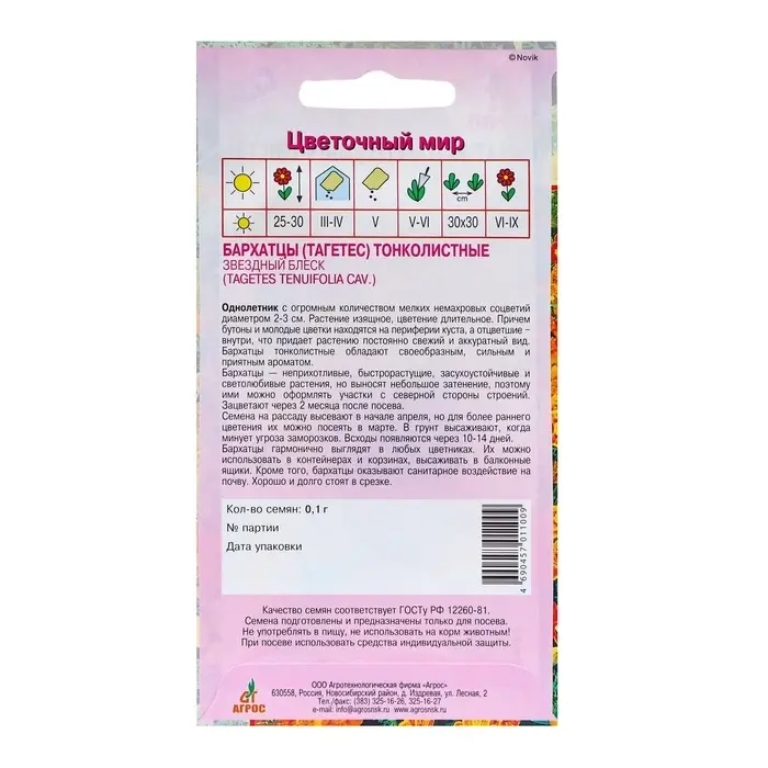 Семена бархатцев смешанных цветов помогут создать гармоничную композицию на вашем участке. Благодаря богатой палитре оттенков, растения можно успешно комбинировать с другими цветущими культурами. Простота в уходе и адаптивность к солнечным местам делают бархатцы подходящими даже для начинающих садоводов.