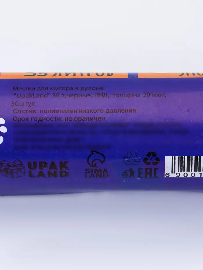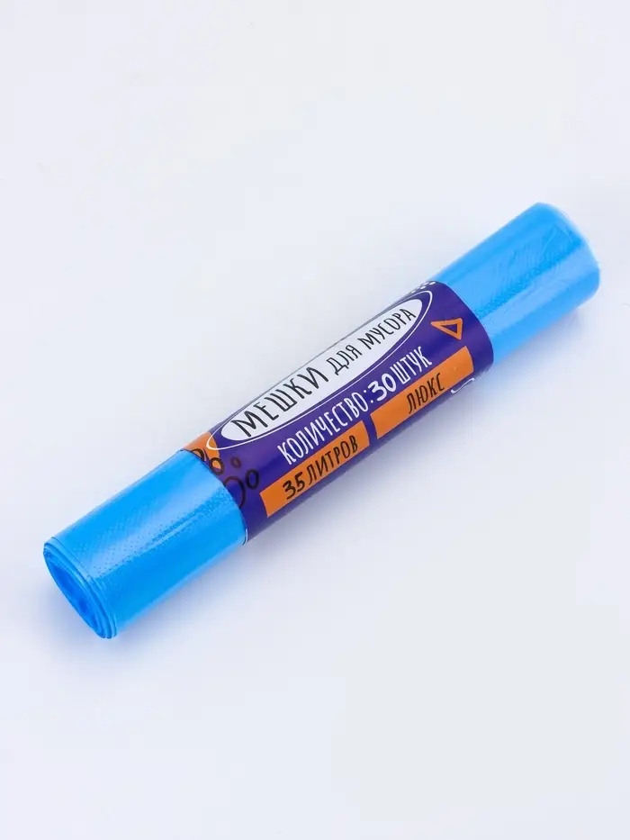 Мешки для мусора 35 л, ПНД толщина 20 мкм, 30 шт в рулоне, цвет синий