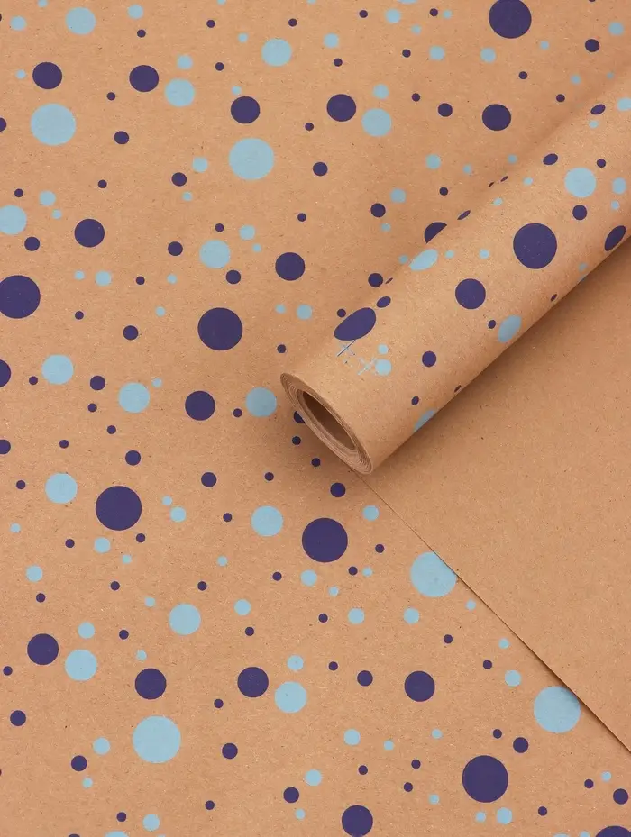 Крафт бумага «Конфетти» синий/голубой на коричневом фоне, 0.72×10±5% м, 60 г