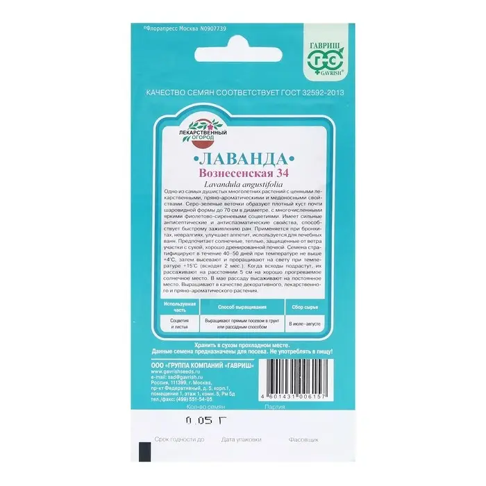 Семена Лаванда узколистная, "Вознесенская 34", ц/п, 0,05 г