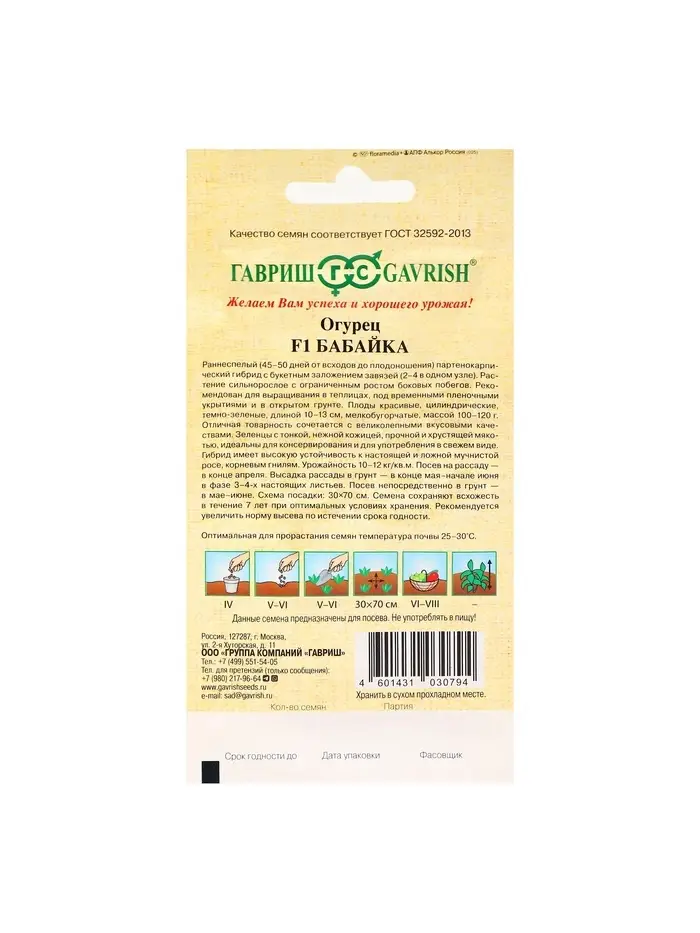 Посев: на рассаду в конце апреля. Помещайте молодые растения в грунт с конца мая по начало июня в фазе 3–4 настоящих листьев. Производите посев в грунт в мае–июне по схеме 30 × 70 см.