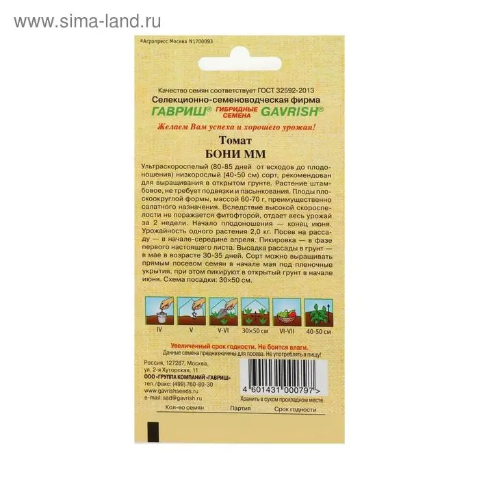 Семена Томат "Бони ММ", суперранний,детерминантный,низкорослый 0,05 г