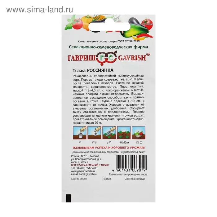 Семена Тыква "Россиянка", 2,0 г