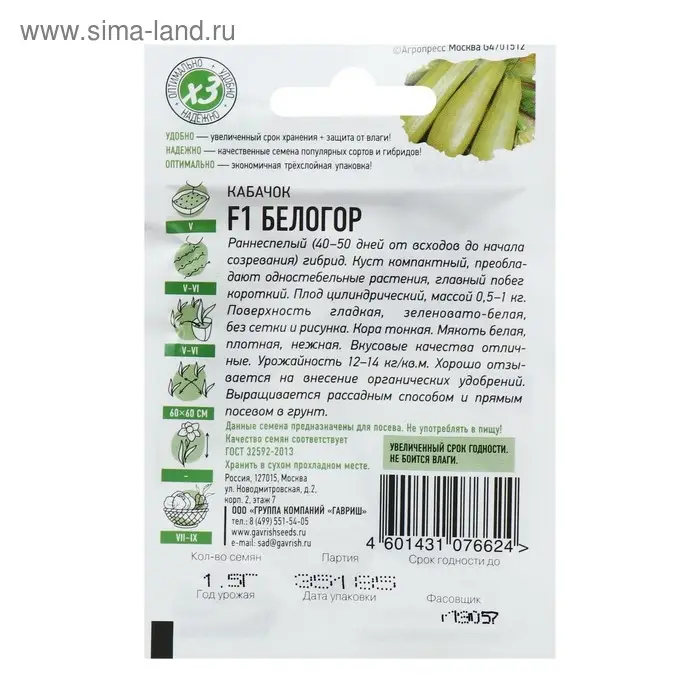 Семена Кабачок "Белогор" F1, 1,5 г серия ХИТ х3