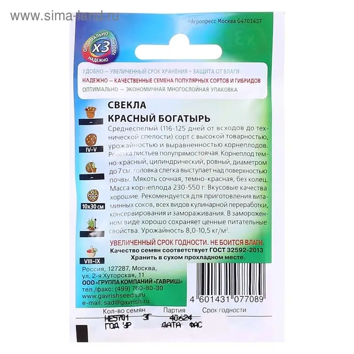 Семена Свекла "Русский Борщ" F1, столовая, цп, 1 г.