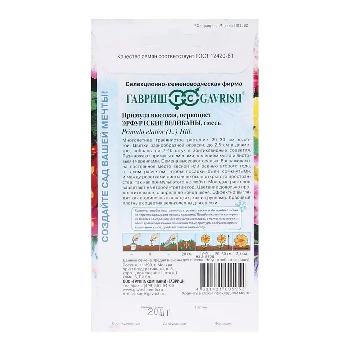 Семена цветов Примула "Эрфуртские великаны", ц/п, серия Устойчив к заморозкам, 20 шт