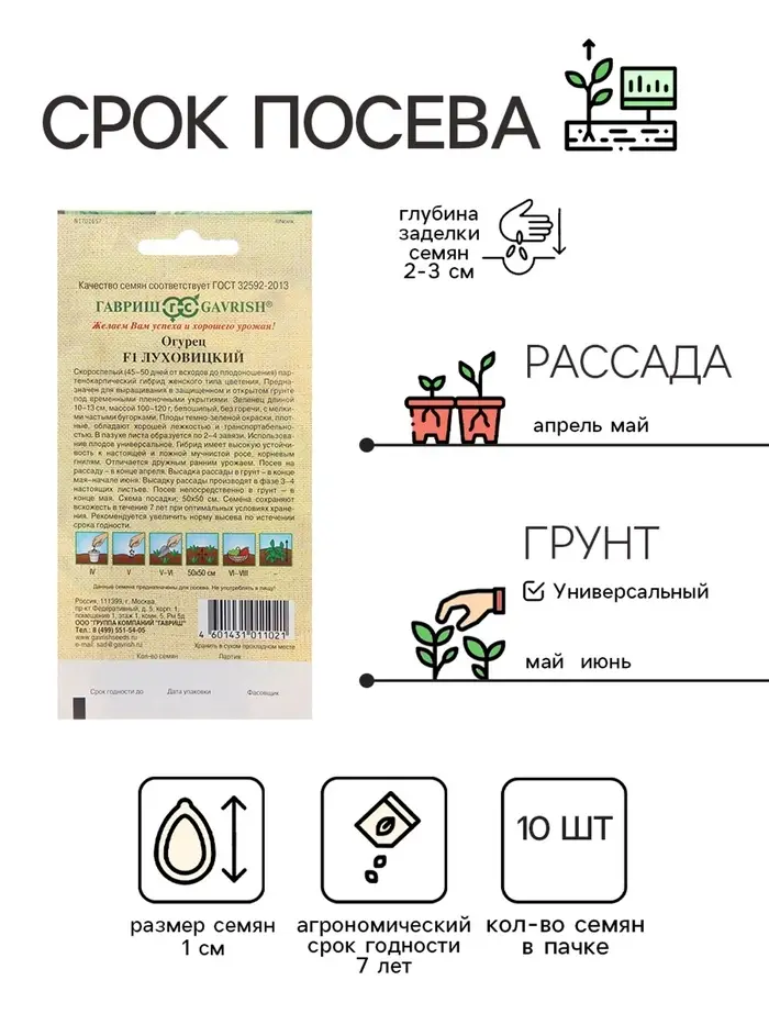 Семена Огурец "Луховицкий", F1, корнишон, 10 шт
