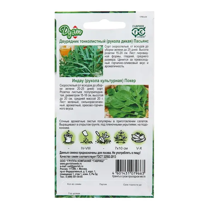 "Двурядник тонколистный" или "рукола дикая" - это название одного и того же растения. Рукола обладает острым вкусом и широко используется в кулинарии для добавления в салаты, соусы и блюда. Семена руколы можно посадить в почву с весны до осени, и они быстро прорастут, образуя нежные листья. Растение предпочитает солнечные места и умеренный полив.