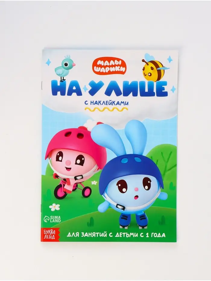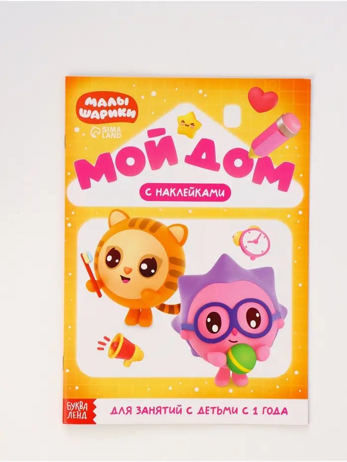 - Персонажи «Малышариков» сопровождают ребёнка на каждой странице — они не отвлекают, а создают доверительную атмосферу.