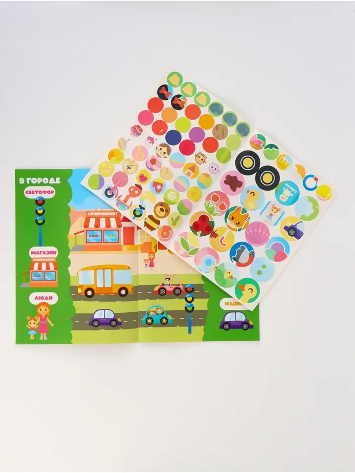 - Мягкий переплёт и плотная бумага выдерживают активное использование: листать, тыкать пальцем, перекладывать наклейки — всё это безопасно и удобно.