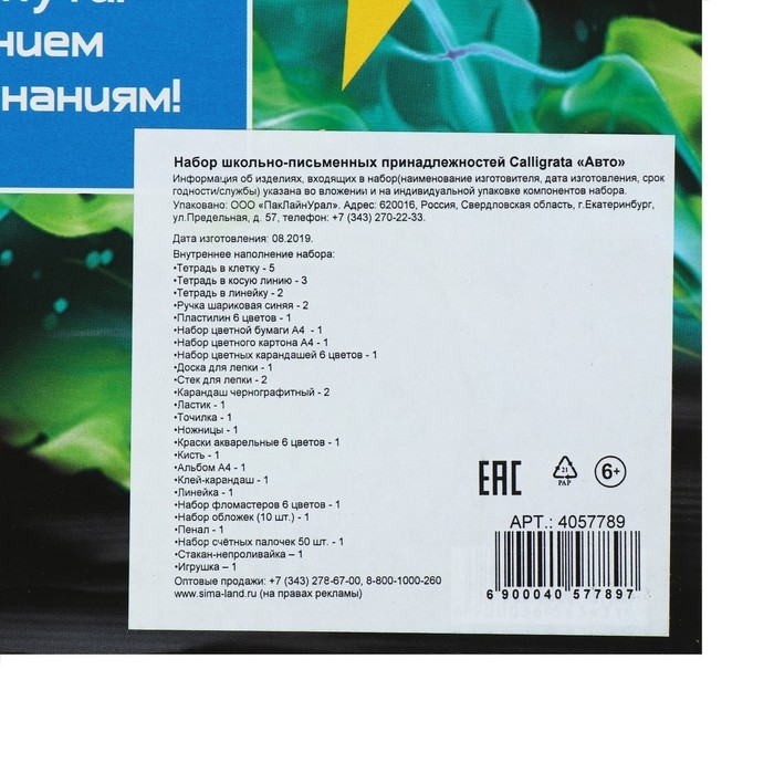 Содержание набора первоклассника Calligrata, 44 предмета: