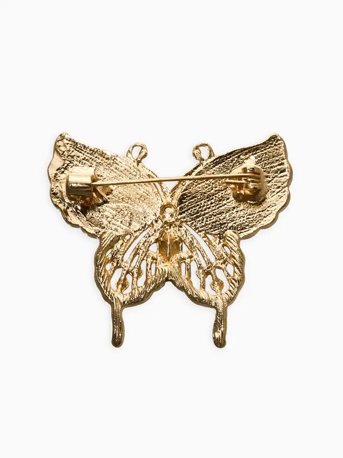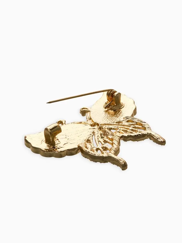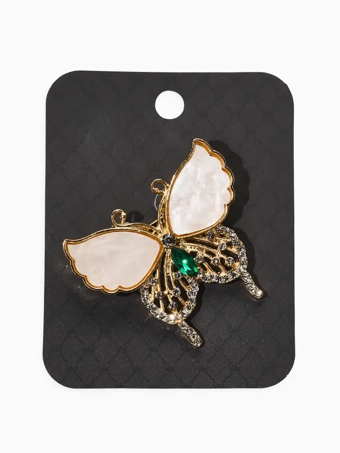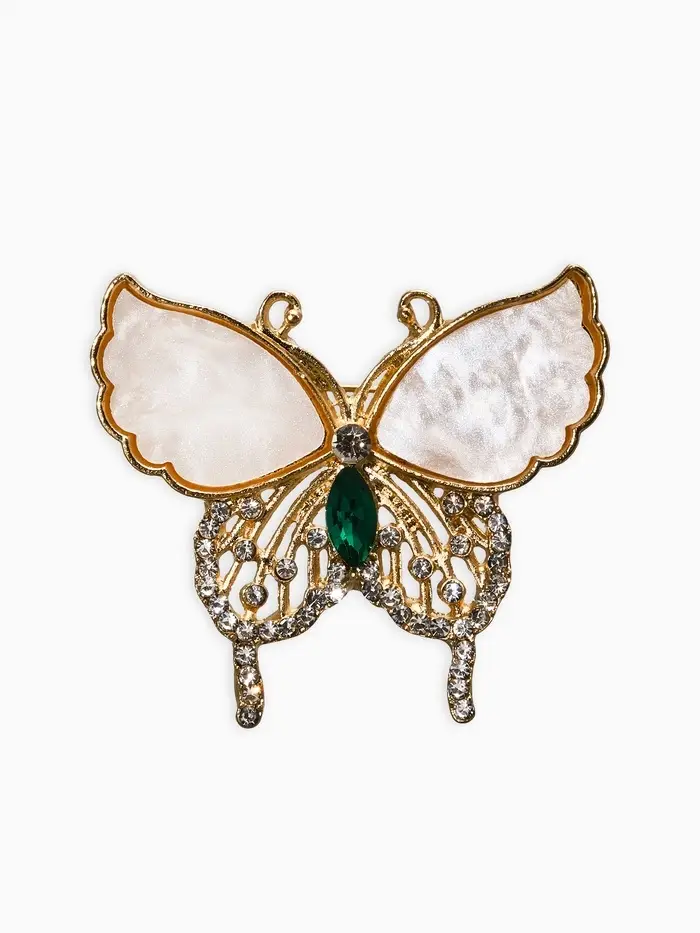 Брошь "Бабочка", цвет бело-зелёный в золоте