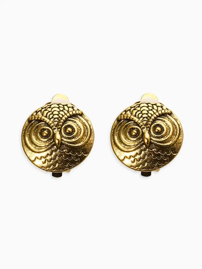 Клипсы "Винтаж" сова, цвет чернёное золото
