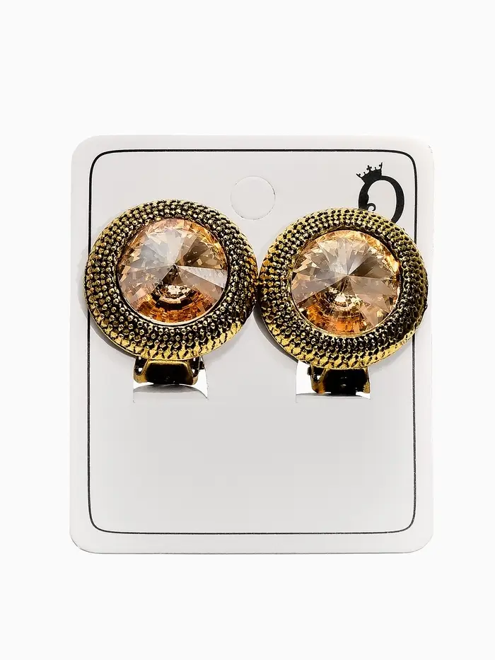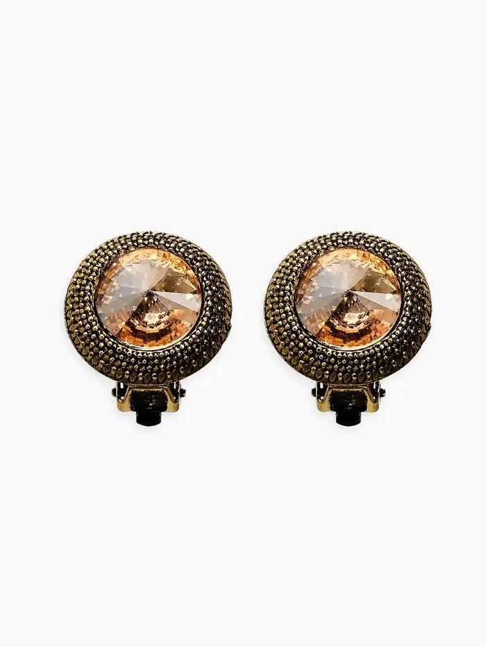 Клипсы "Винтаж" круг страз, цвет золотой в чернёном золоте