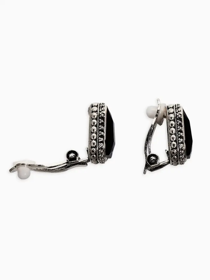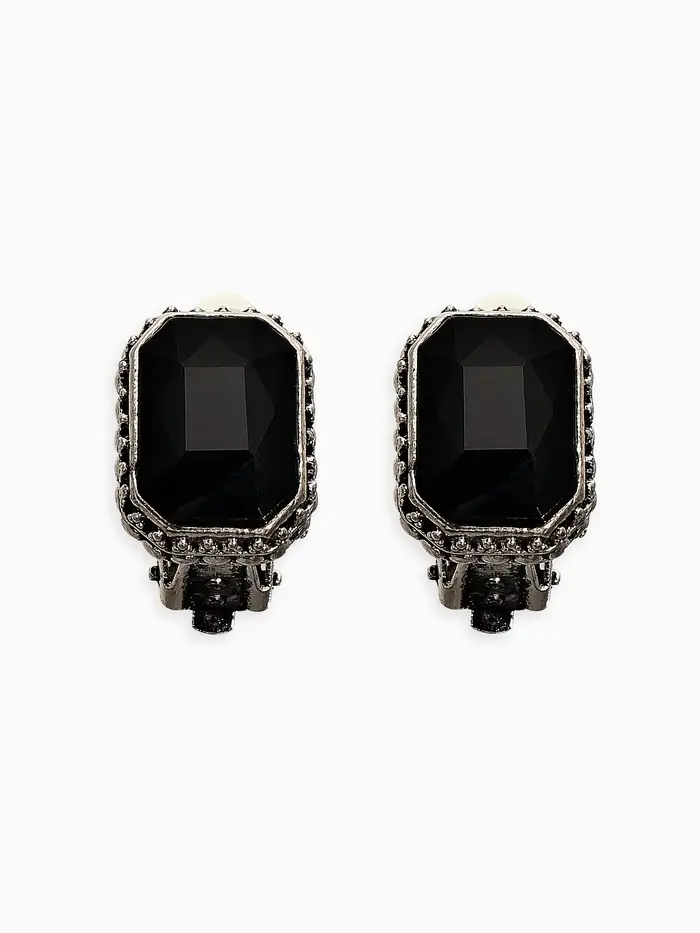 Клипсы "Винтаж" прямоугольник грань, цвет чёрный в чернёном серебре