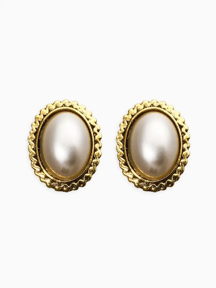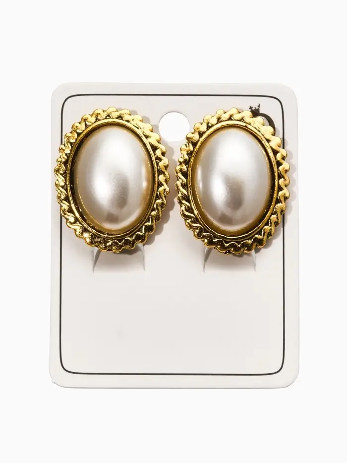 Клипсы "Винтаж" овал жемчуга, цвет белый в чернёном золоте