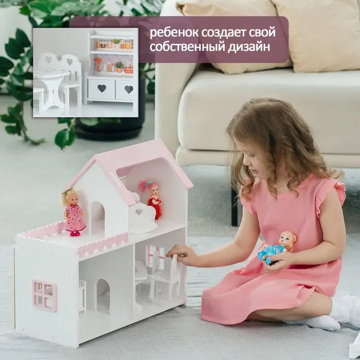 Кукольный домик «Мини» в бело-розовых тонах — это уютное и компактное деревянное строение, которое станет настоящим украшением детской комнаты. Его стильный дизайн и продуманные размеры создадут атмосферу радости и веселья, позволяя детям разыгрывать увлекательные сценки с любимыми куклами. Домик отличается прочной конструкцией, что делает его безопасным для детей от 3 лет и старше.