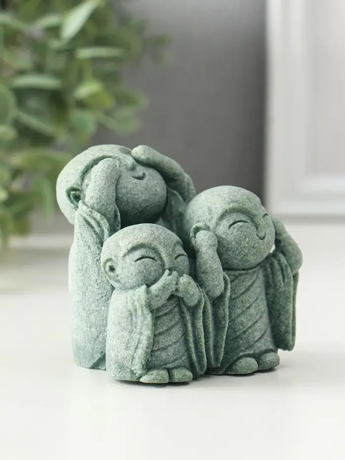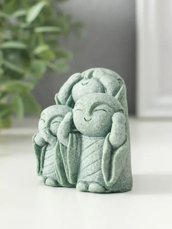 Сувенир песчаник "Статуя Дзидзо - не вижу, не слышу, не скажу" 5,8х7х7 см
