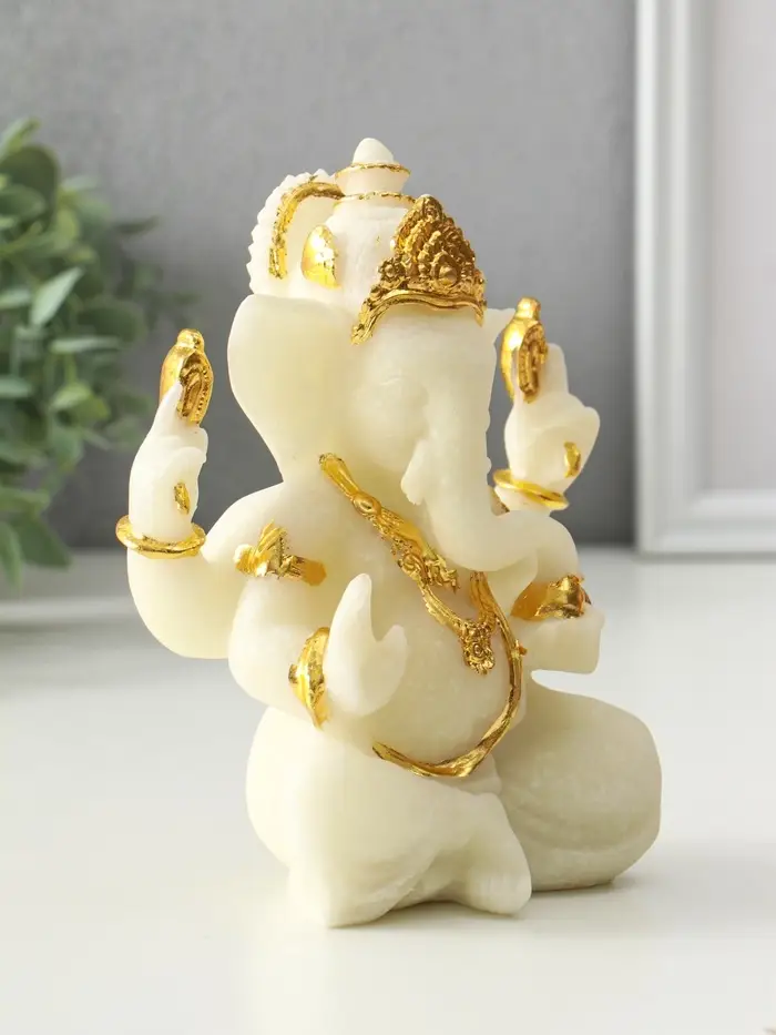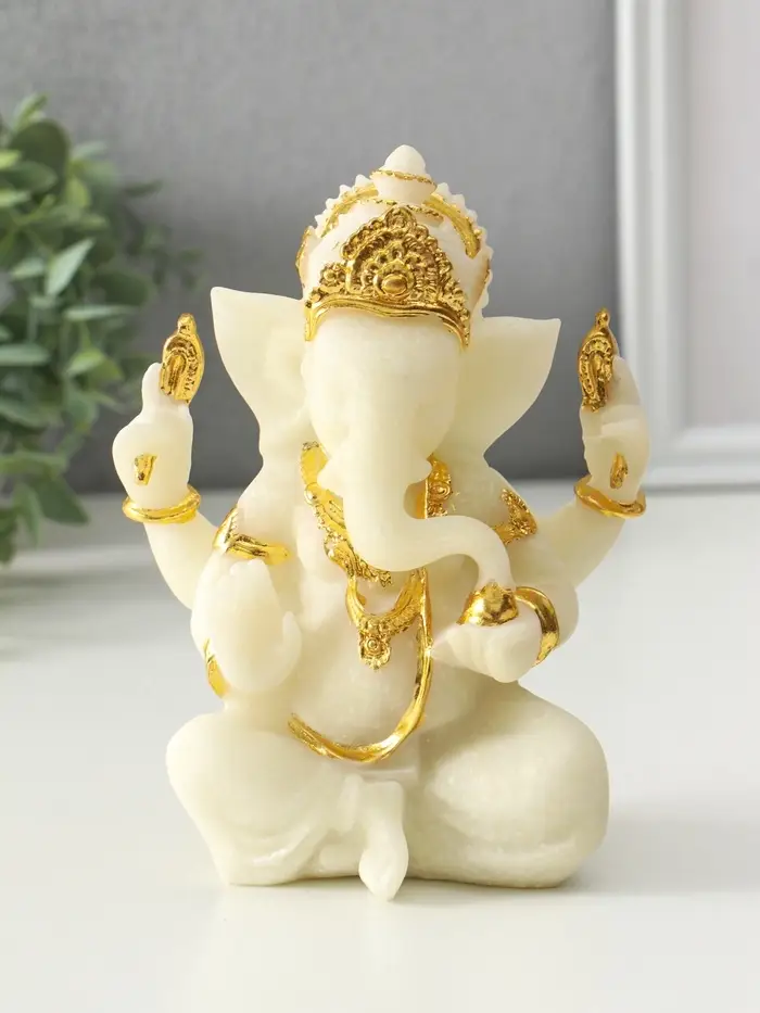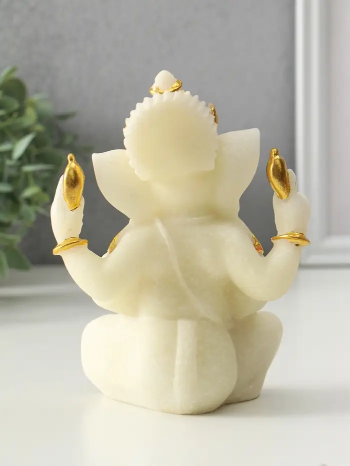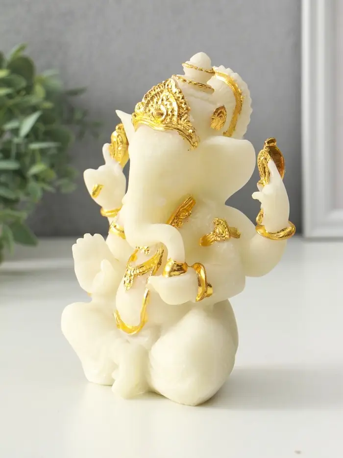 Сувенир песчаник "Ганеша - мудрость и благополучие" белый с золотом 8х13х18,5 см
