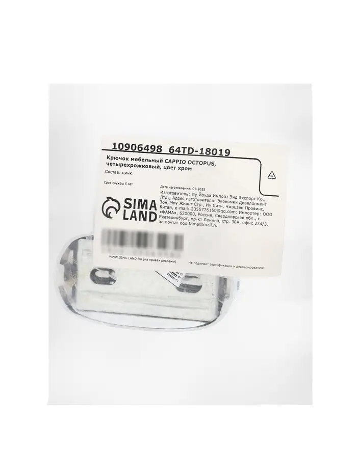 Крючок мебельный CAPPIO OCTOPUS, четырехрожковый, цвет хром