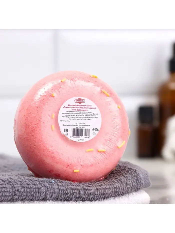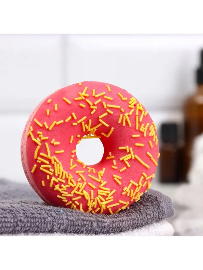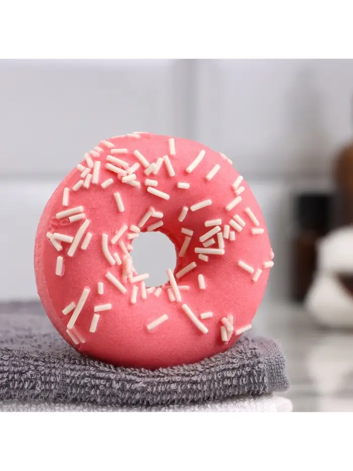 Бомбочка для ванн "красный пончик с кокосовой посыпкой" 85 г