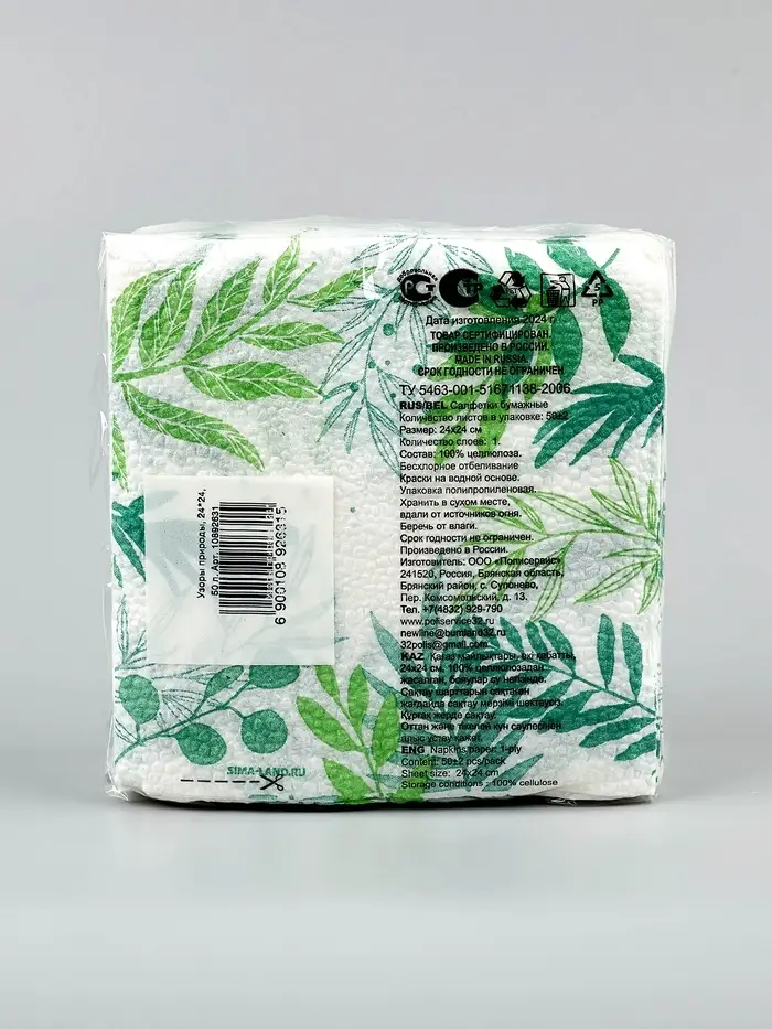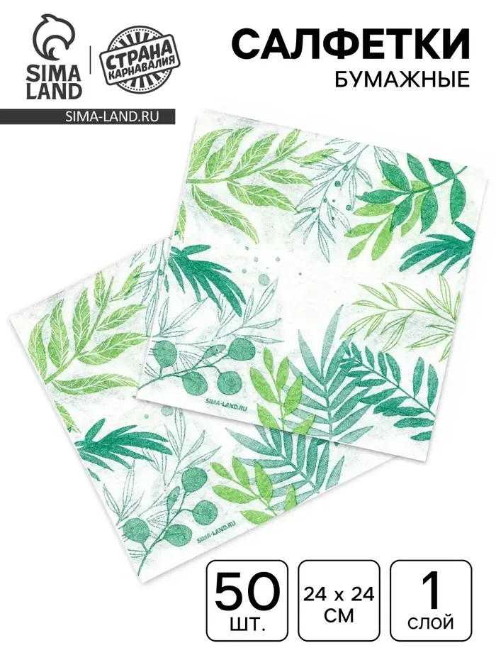 Салфетки бумажные однослойные «Узоры природы», 24х24 см, 50 шт